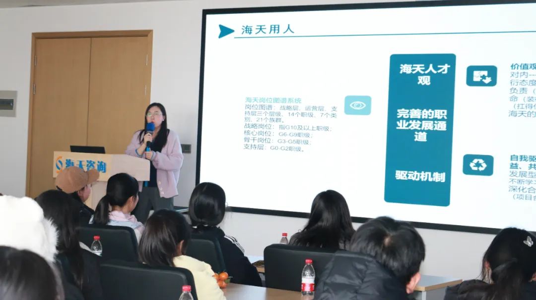 隨后,大家移步海闊廳,在觀看完海天宣傳片后,首先由人力資源總監(jiān)孫巍進行發(fā)言。